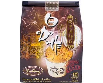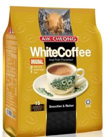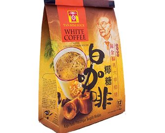 「白咖啡」是咖啡豆採用低溫烘培,保留住咖啡原有的香味,去除高溫烘焙產生的焦苦及酸澀味,低咖啡因,質純溫和,不傷腸胃。 係採用阿拉比卡(Aradica)精選的咖啡豆,經過低溫烘焙後,味道香而不苦,黏度也比黑咖啡高,而且滑順,甘醇芳香。